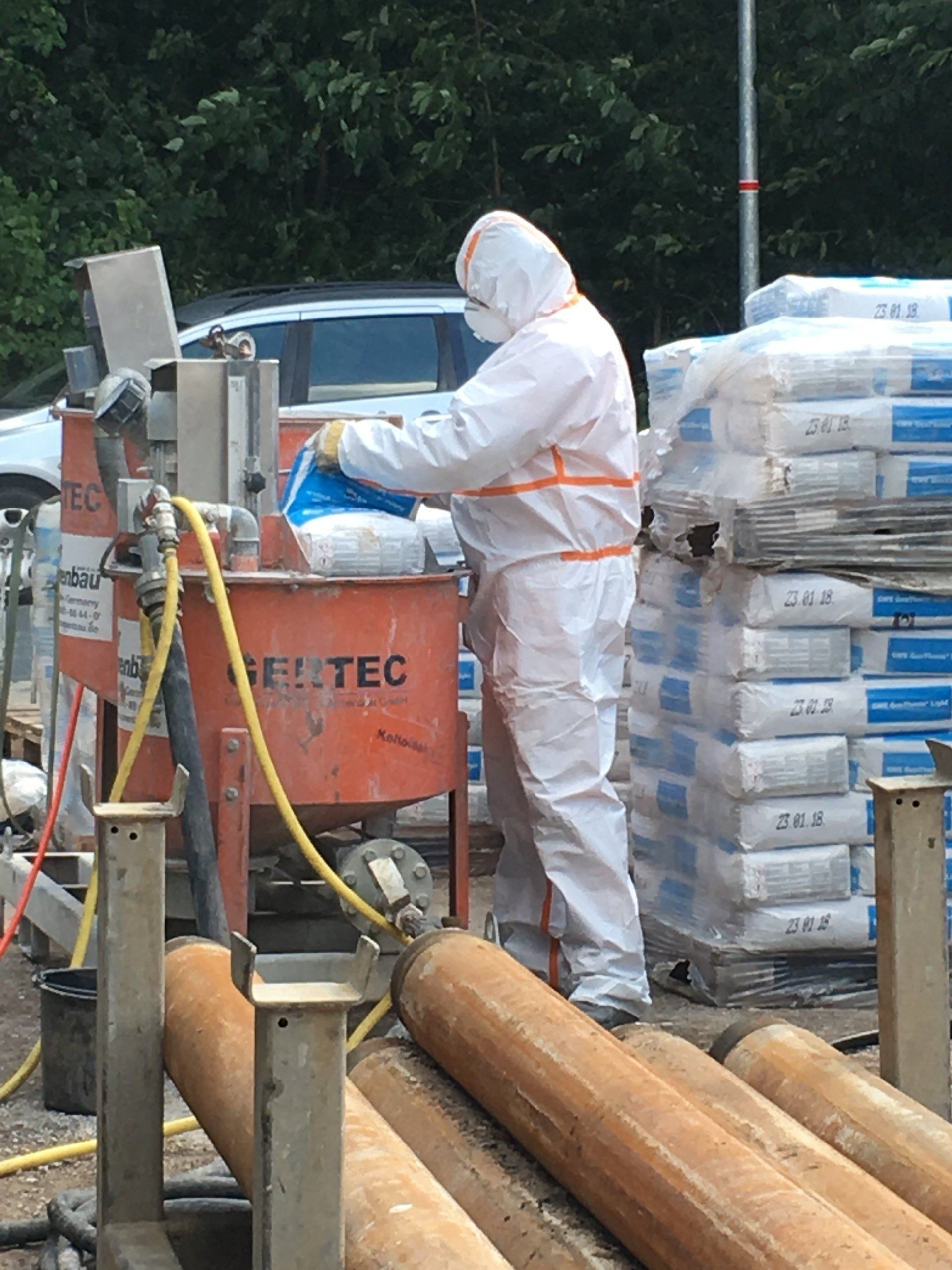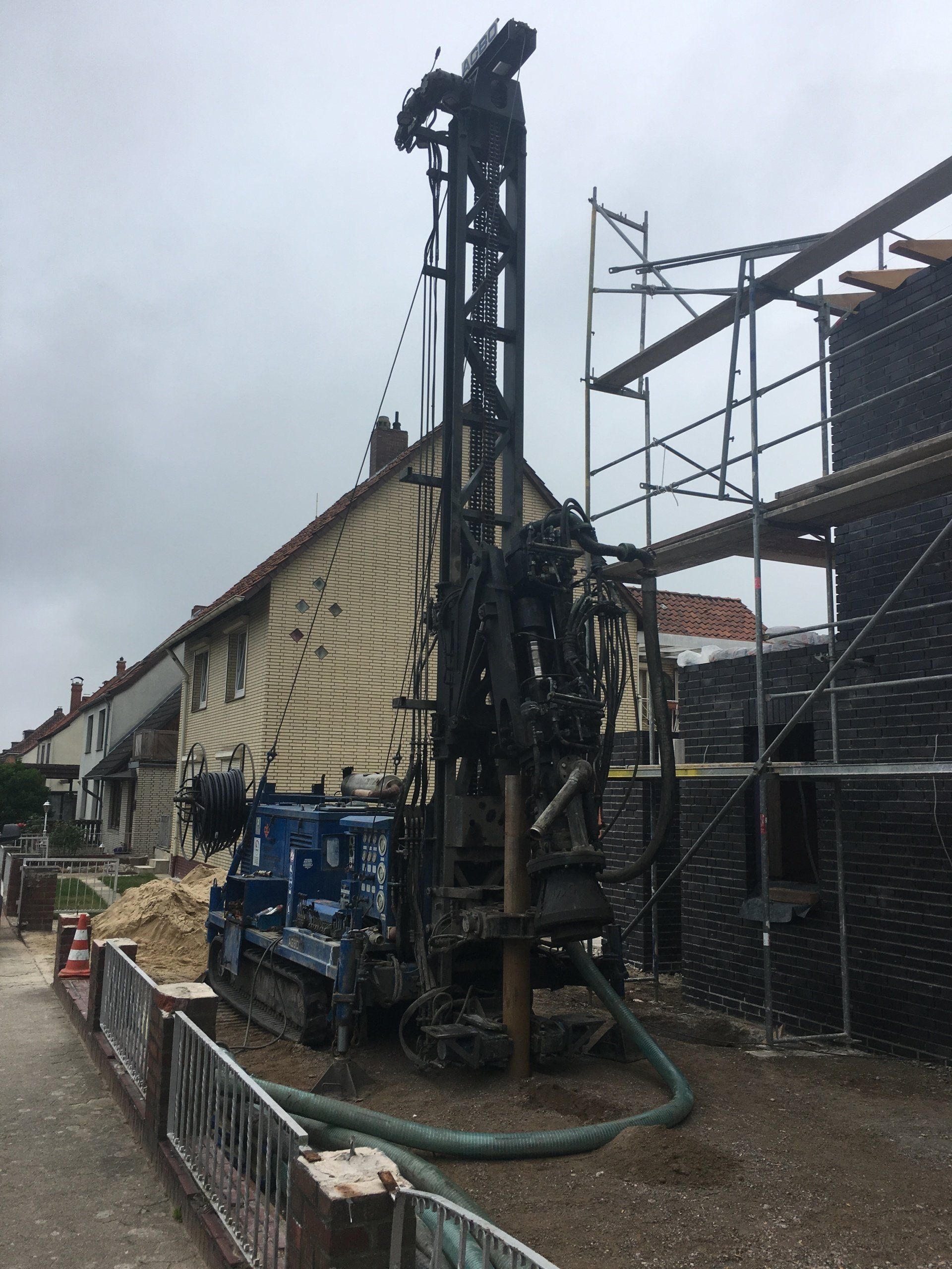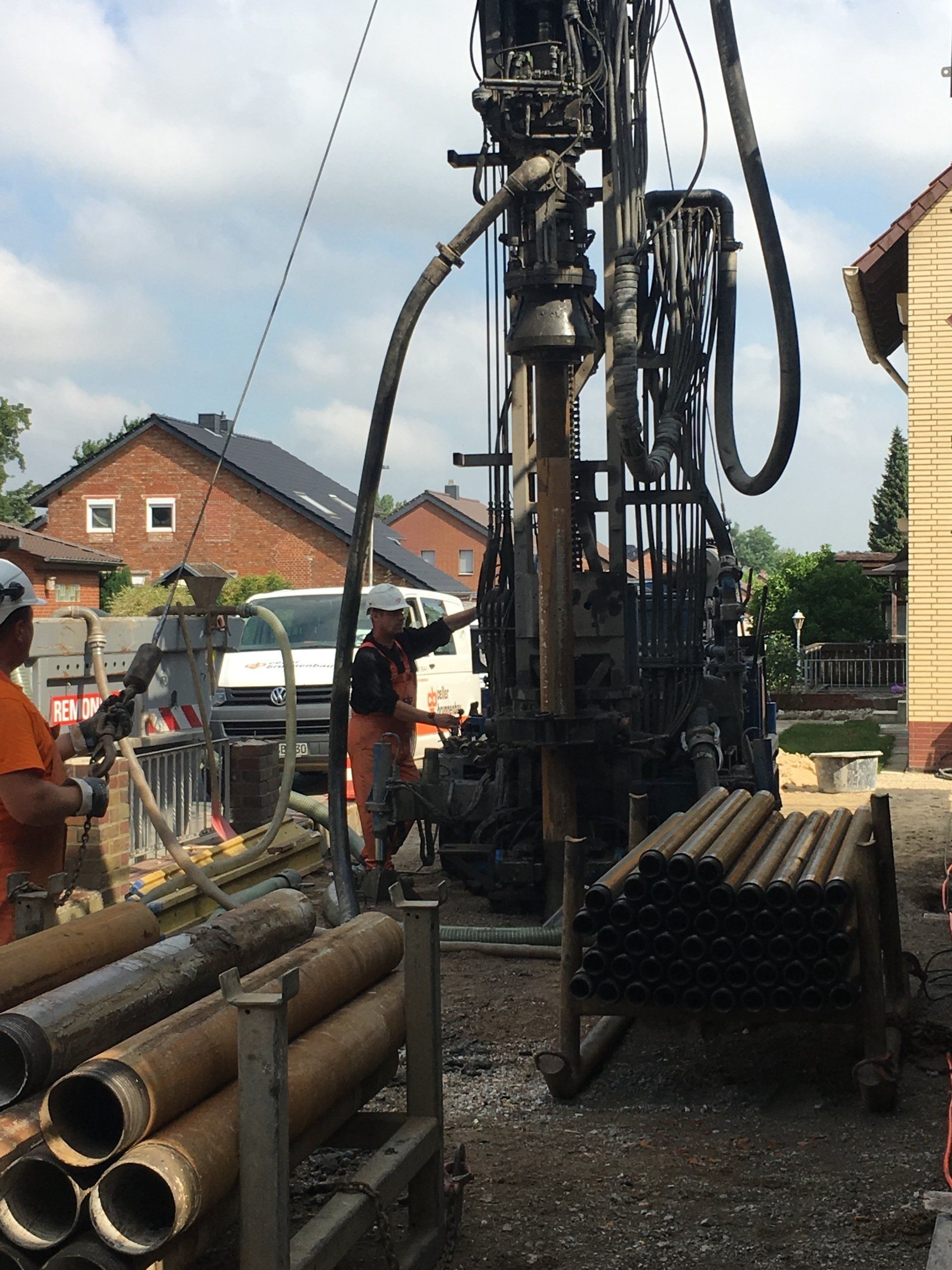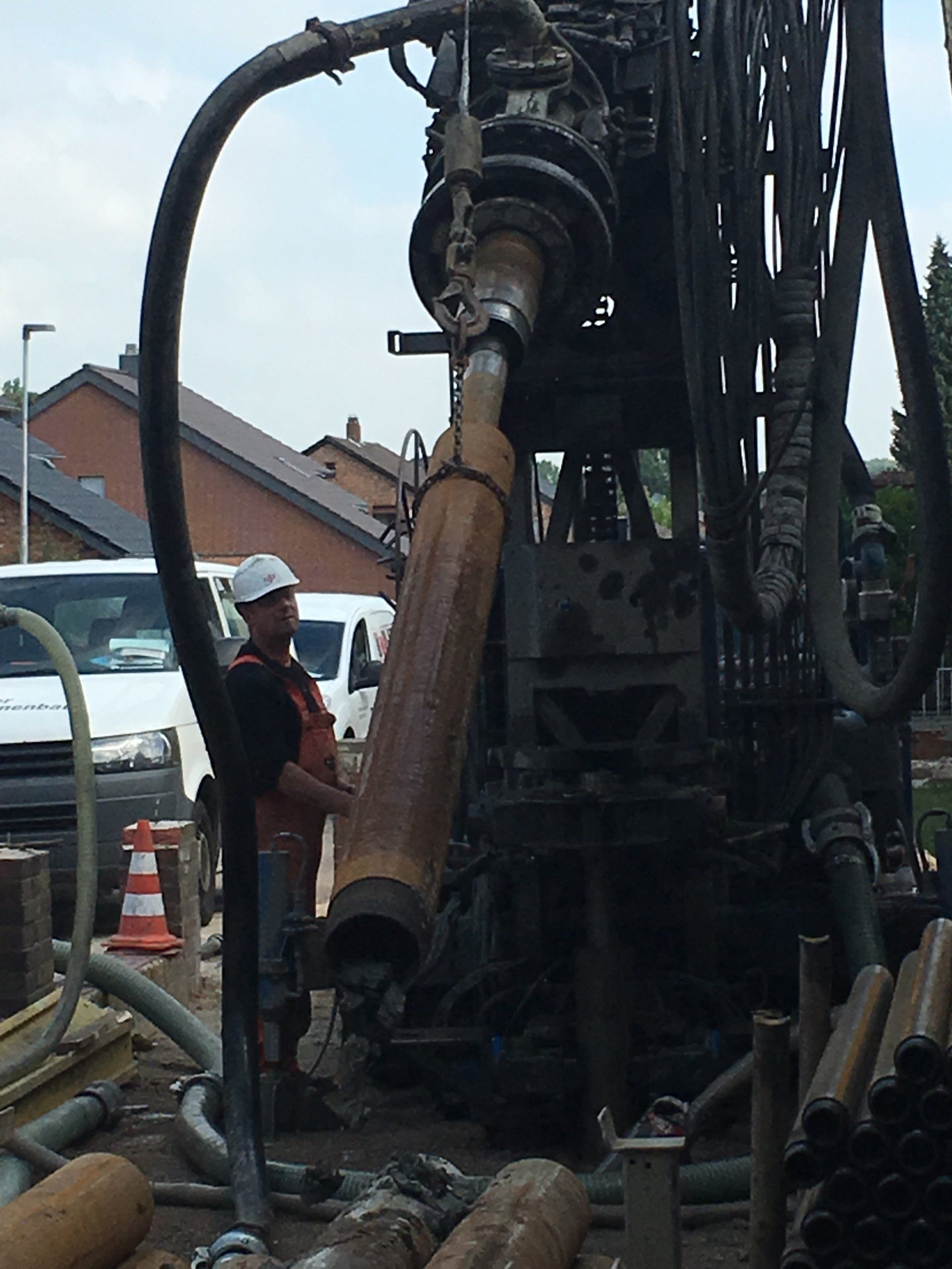 Hier sehen Sie wie eine Bohrung für eine Solewärmepumpe vorgenommen wird. Diese wurde bei einer Tiefe von 120m eingesetzt. Alle 2m wird eine Bohrprobe gemacht. Am Ende wird das gebohrte Loch mit Beton verfüllt, damit die Erde Ihre Stabilität beibehält.
